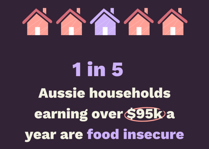 Foodbank’s Hunger Report 2024 highlights that low-income households are at a breaking point. One in five median income households (earning >$95K per year) are food insecure and more than half (59%) of all food insecure households in Australia are experiencing it at the severe level, regularly skipping meals or going entire days without food.